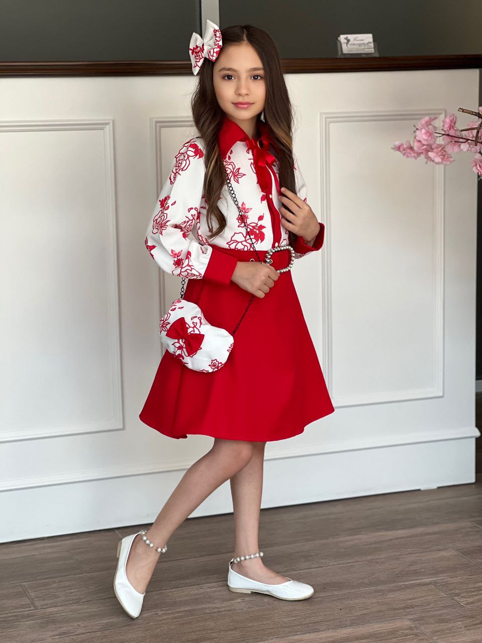 فستان بناتي | حقيبة وربطة شعر| حزام